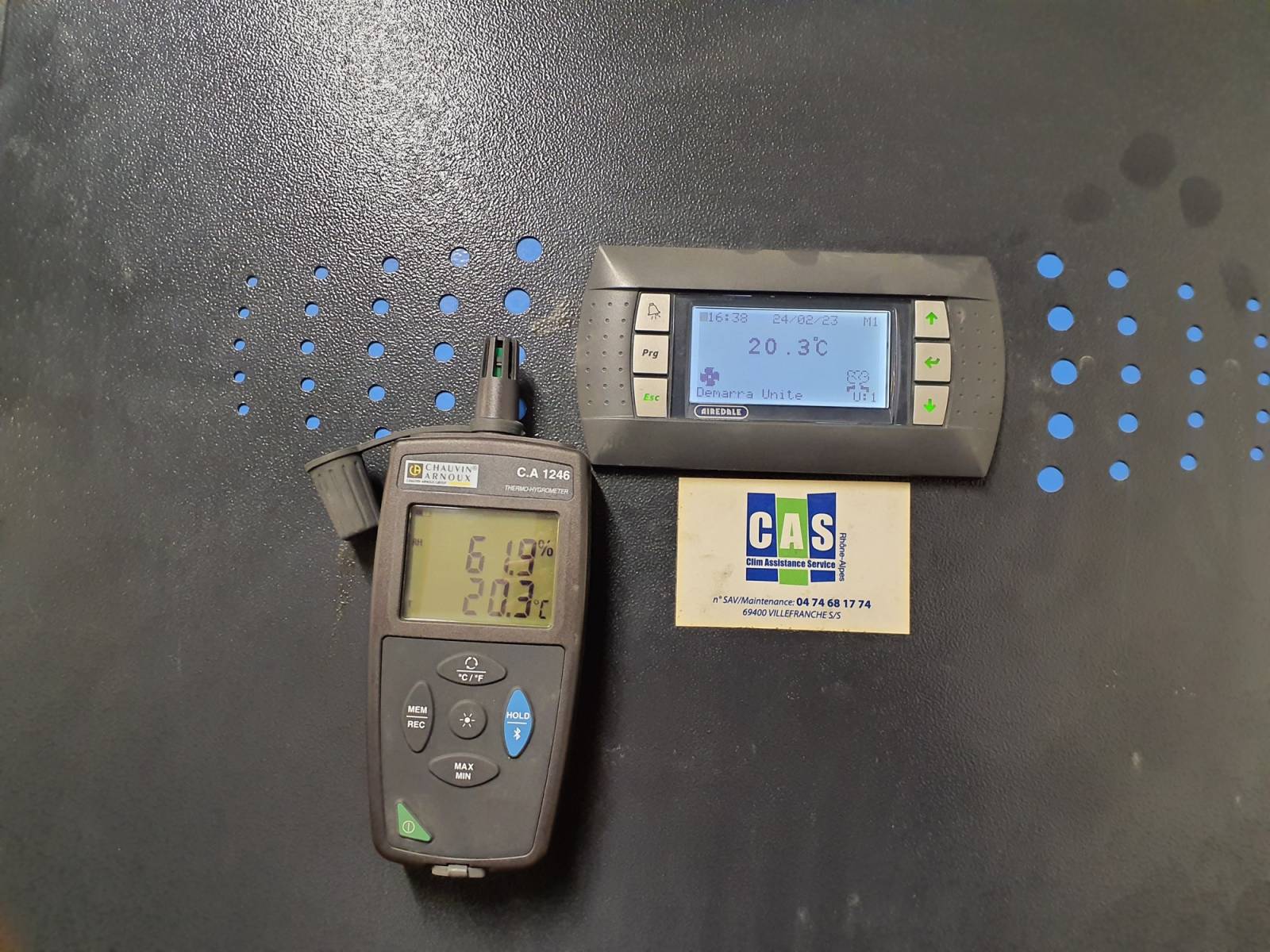 Dépannage de remplacement d’un bloc sonde ambiance/hygrométrie sur un humidificateur de marque Airedale à Clermont Ferrand.