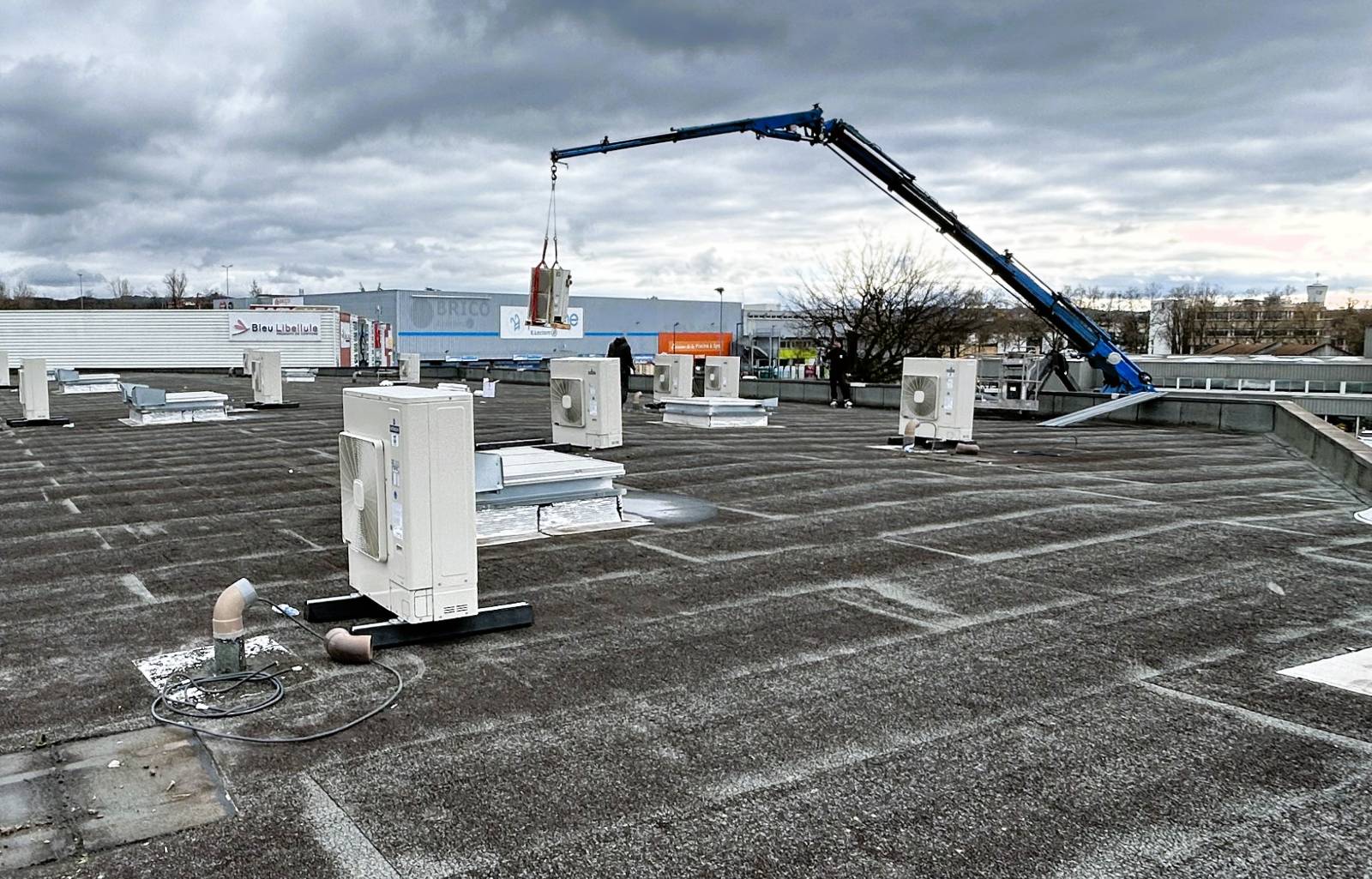 La mise en service d'une installation de climatisation Hitachi à Andrezieux a été réalisée, comprenant le levage des unités extérieures par grue, en étroite collaboration avec notre partenaire.